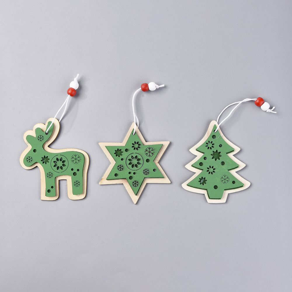 Drevené ozdoby Jeleň, hviezda, strom 165-185mm, 3 ks/balenie