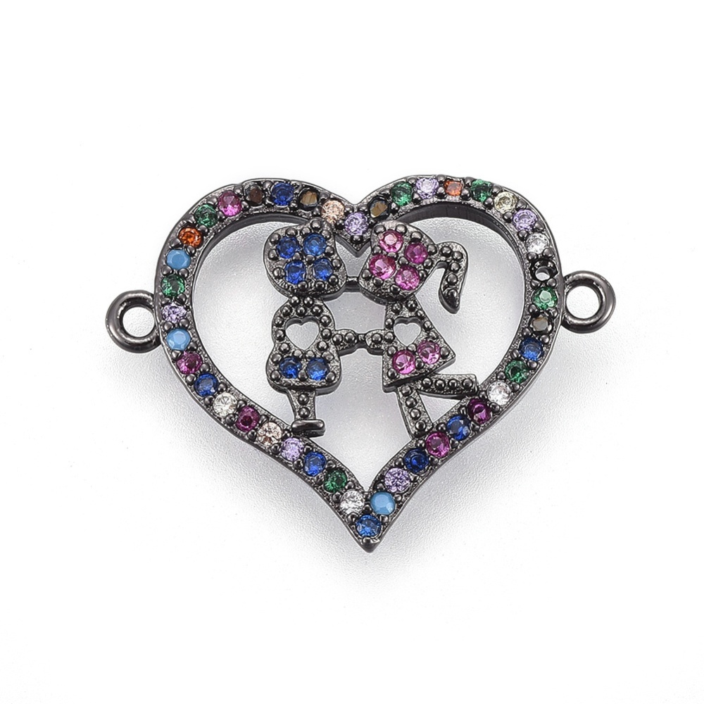 🌟 Kovový Medzičlánok Srdce s Kamienkami a Zaľúbencami 22x16.5x2.5mm, 1 ks 🌟