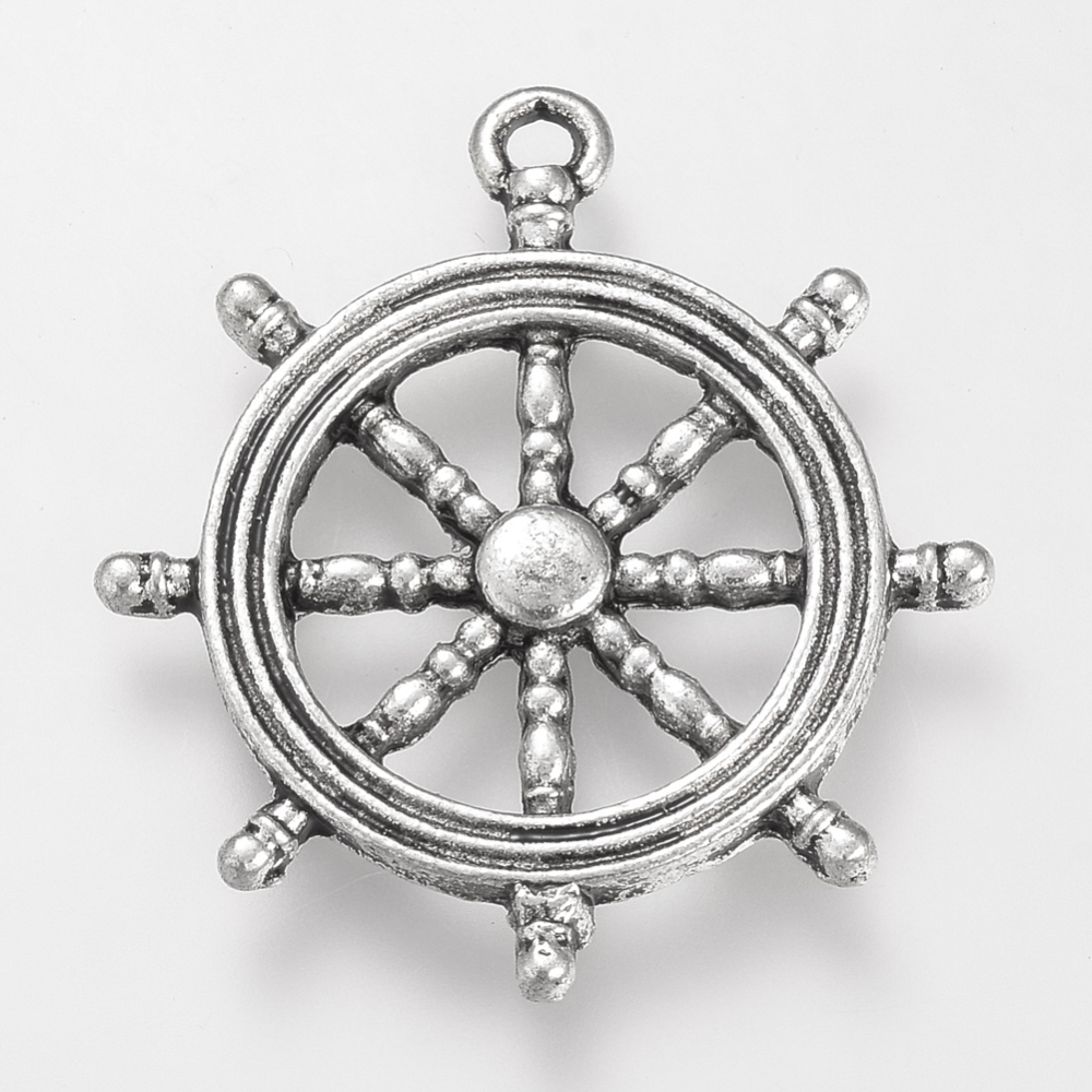 Zobraziť všetky novinkyKovový prívesok Kormidlo bezolovnaté 28.5x26x2mm, 10 ks