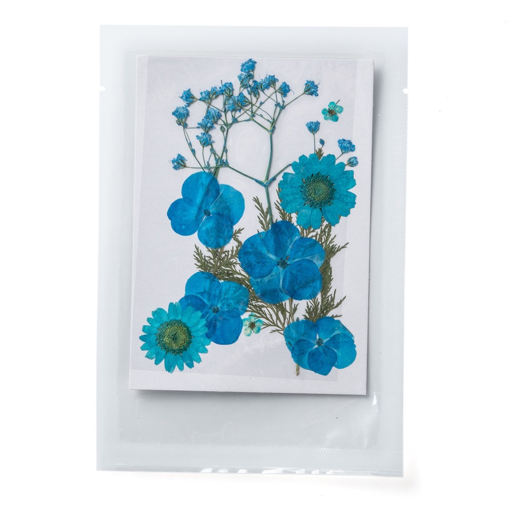 Lisované sušené kvety Modrý Mix 120x85x0.3mm, 1 balenie