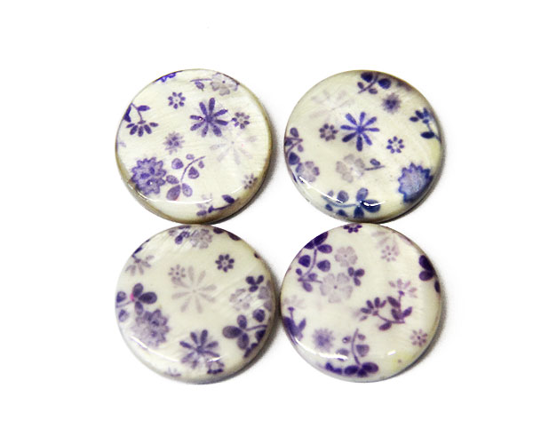 Placky majú priemer 20 mm a krásne na ních vyniká povrchová štruktúra, ktorá je pre prírodnú perleť typická. Dierka ide priamo cez celú placku.
