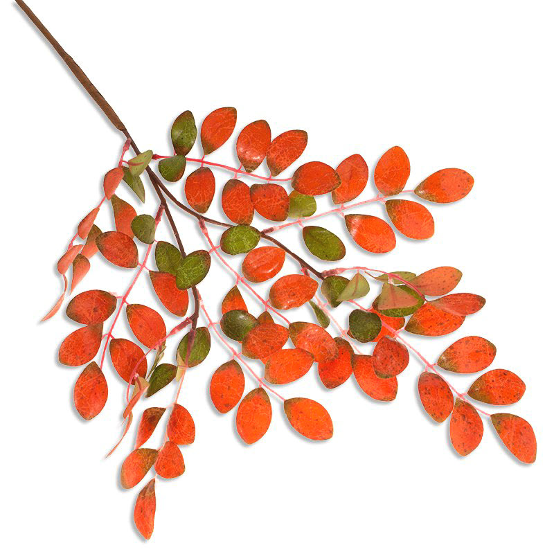 Umelá dekoračná vetvička s krásnymi listami v jesenných farbách, ktoré su prepracované do detailu.