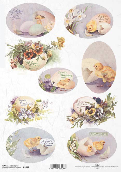 Objavte náš jedinečný Veľkonočný ryžový papier na decoupage s rozmermi 210 x 297 mm a gramážou 25-30 g/m2. S naším špeciálnym ryžovým papierom môžete vytvoriť úžasné umelecké diela pri zdobení rôznych povrchov.