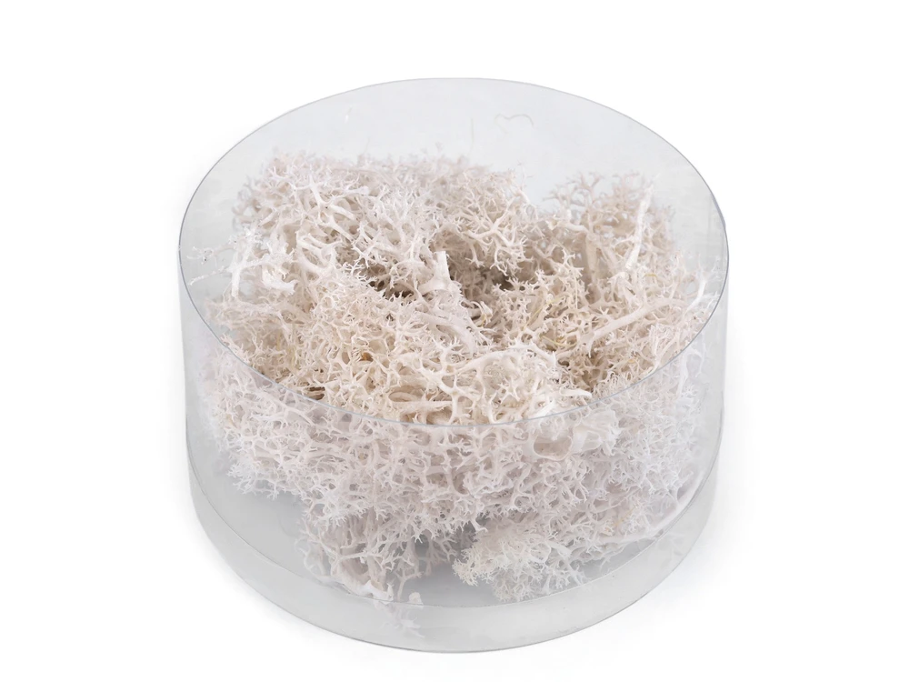 Využitie: Tento prírodný mach je dokonalým doplnkom pre tvorbu aranžmánov a vencov. Jeho biela farba prinesie do vašich výtvorov žiarivý a prirodzený vzhľad. Či už sa venujete floristickej tvorbe pre osobné potešenie alebo profesionálne účely, naša stabilizovaná machina pridáva do vášho repertoáru neobmedzené možnosti.